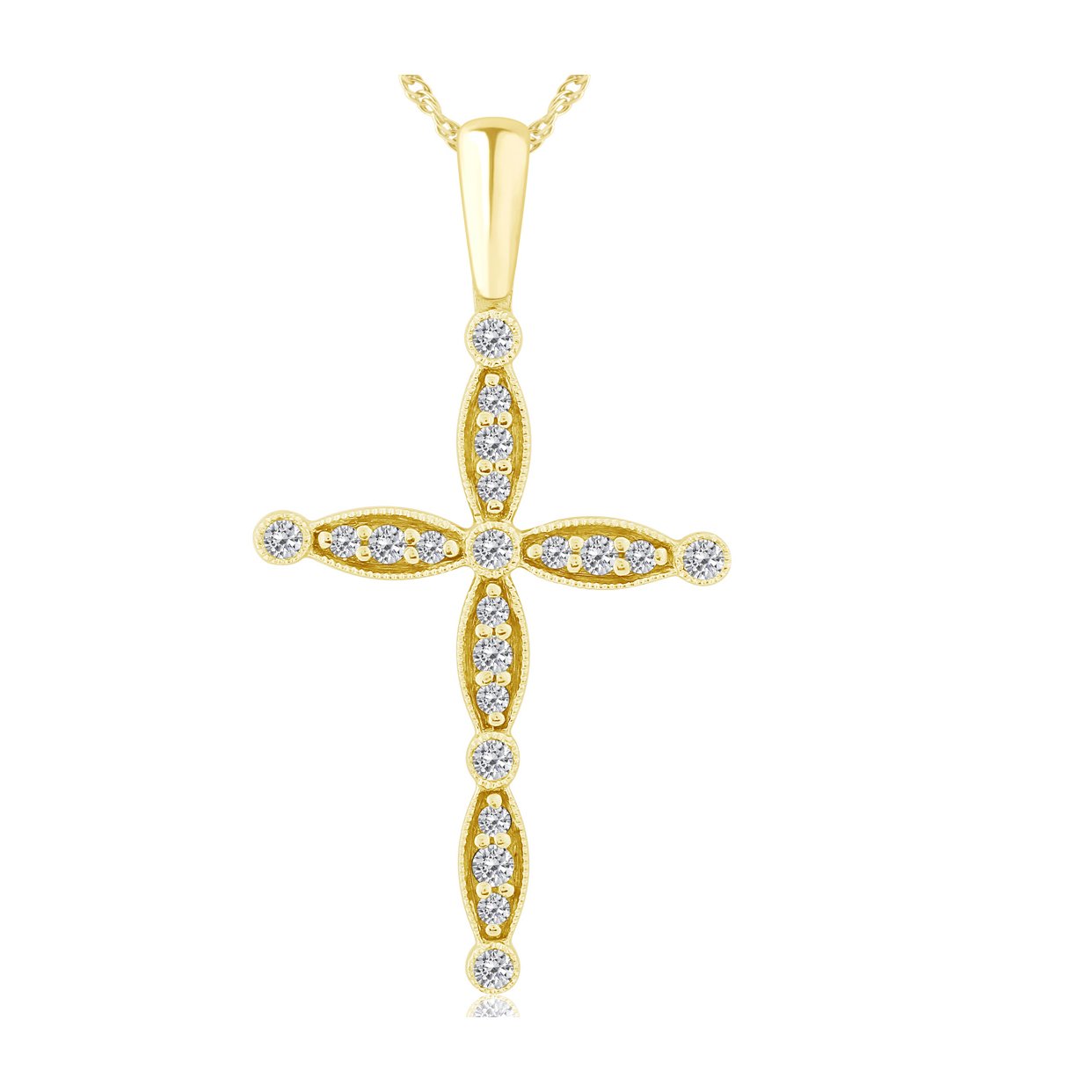 Home / Pendants | Necklaces / Cross Pendants / 0.20CT DIAMOND CROSS PENDANT 0.20CT DIAMOND CROSS PENDANT$0.00 Metal 10KT / 14KT / 18KT Metal Color White / Yellow / Pink 0.20CT DIAMOND CROSS PENDANT quantity Buy now Style No: P180066 Product ID: 17498 Description Additional information Description Additional information Carat Weight 0.20 Related products View Details Add to Cart 0.75CT 11 STONE BEZEL NECKLACE $0.00 Buy now View Details Add to Cart 0.25CT DIAMOND FASHION PENDANT $0.00 Buy now